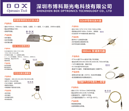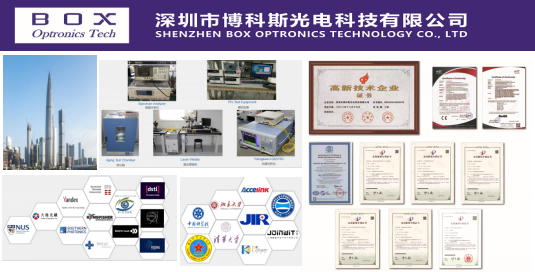 Shenzhen Box Optronics Technology Co., Ltd.(BOX Optronics Tech) este o întreprindere de înaltă tehnologie specializată în comunicații prin fibră optică și detecție prin fibră optică. Compania se angajează să ofere clienților produse și servicii de calitate superioară, timpi mai rapidi de răspuns la servicii și să ajute clienții să creeze mai multă valoare. Cu capacități puternice de cercetare și dezvoltare, producție și vânzări, precum și ingineri experimentați în dezvoltarea de produse, compania poate personaliza produse personalizate în funcție de diferitele nevoi ale clienților. De mulți ani, compania s-a dedicat inovației tehnologice, introducând continuu tehnologii avansate și talent. A obținut certificate de întreprindere de credit la nivel AAA, IMM-uri bazate pe tehnologie și certificate naționale de întreprindere de înaltă tehnologie și a trecut cu succes certificarea sistemului de calitate ISO9001, respectând strict cerințele sistemului și testând riguros calitatea produsului.