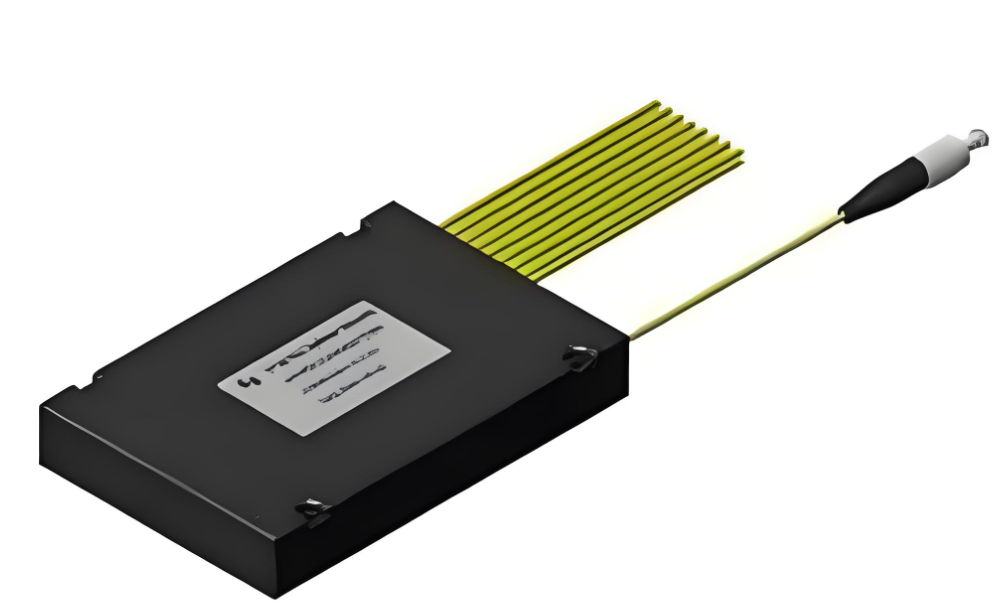 Splitterele optice PLC Plane Wave PLC (Planar Lightwave Circuit) sunt dispozitive integrate de distribuție a puterii cu ghid de undă, bazate pe substraturi de cuarț, fabricate folosind procese semiconductoare (fotolitografie, gravare, dezvoltare etc.). Splitterele PLC împart semnalele optice dintr-o singură fibră optică în mai multe fibre optice, realizând o distribuție uniformă a energiei optice. Matricea de ghid de undă optică este situată pe suprafața superioară a cipului, integrând funcția de divizare pe cip; apoi, rețelele de fibre cu mai multe canale sunt cuplate la capetele de intrare și de ieșire la ambele capete ale cipului și încapsulate.